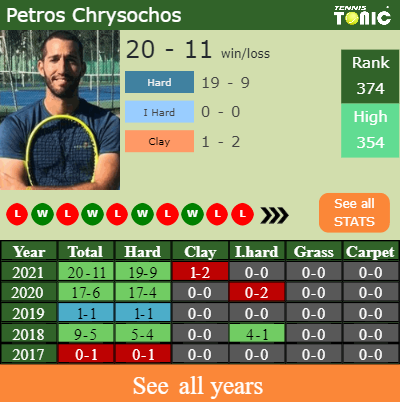Petros has a composed 20-11 win-loss record in 2021, 1-2 on clay (See FULL STATS).
