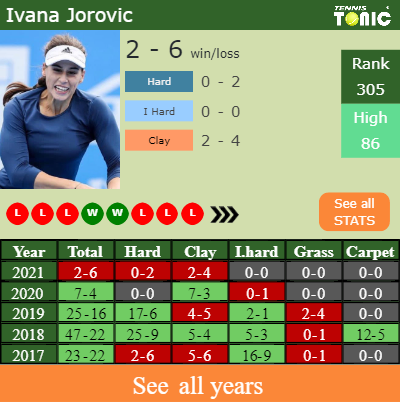 Jorovic has a composed 2-6 win-loss record in 2021, 0-2 on hard (See FULL STATS).