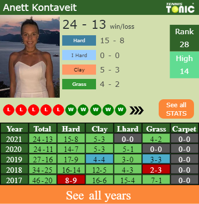 Kontaveit has a composed 24-13 win-loss record in 2021, 15-8 on hard (See FULL STATS).