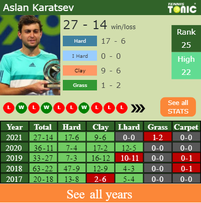 Aslan has an aggregate 27-14 win-loss record in 2021, 17-6 on hard (See FULL STATS).