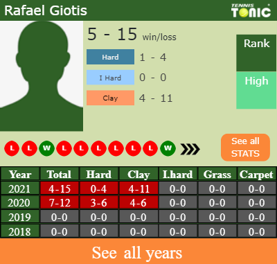 Rafael has an overall 4-15 win-loss record in 2021, 0-4 on hard (See FULL STATS).