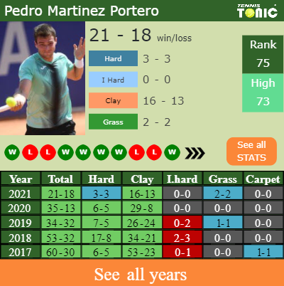 Martinez Portero has a compiled 21-18 win-loss record in 2021, 3-3 on hard (See FULL STATS).