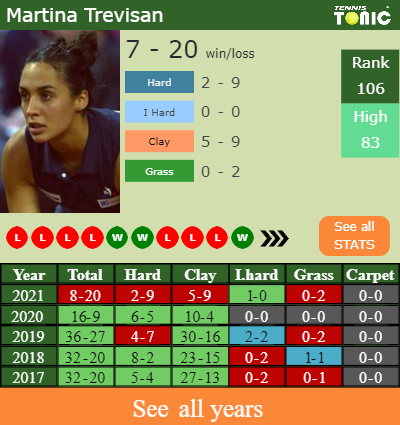 Martina has a composed 8-20 win-loss record in 2021, 2-9 on hard (See FULL STATS).