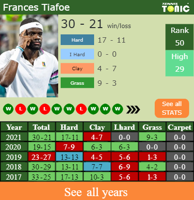 The American has an overall 30-21 win-loss record in 2021, 17-11 on hard (See FULL STATS).