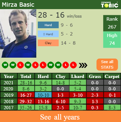 The Bosnian has a compiled 28-16 win-loss record in 2021, 14-8 on clay (See FULL STATS).