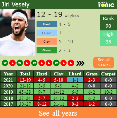 Jiri has an aggregate 12-19 win-loss record in 2021, 5-10 on clay (See FULL STATS).