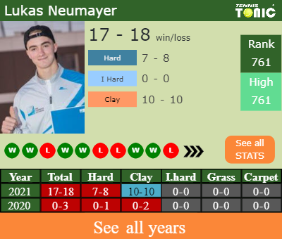 In terms of his career, Neumayer has an overall 17-21 record. He has a negative 10-12 record on clay.