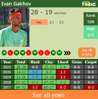 The Russian has a composed 28-19 win-loss record in 2021, 23-15 on clay (See FULL STATS).