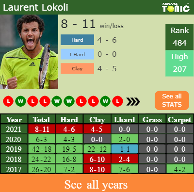 The French player has an overall 8-11 win-loss record in 2021, 4-6 on hard (See FULL STATS).