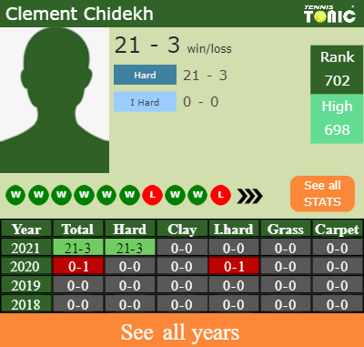 In terms of his career, Clement has an overall 21-4 record. He has a positive 21-3 record on hard.