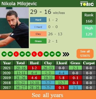 The Serbian has a compiled 29-16 win-loss record in 2021, 26-13 on clay (See FULL STATS).