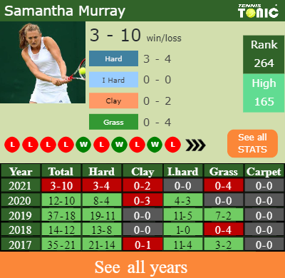In terms of her career, The Brit has an overall 192-152 record. She has a positive 103-76 record on hard.