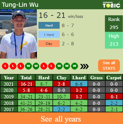 Tung-Lin has a compiled 16-21 win-loss record in 2021, 8-7 on hard (See FULL STATS).