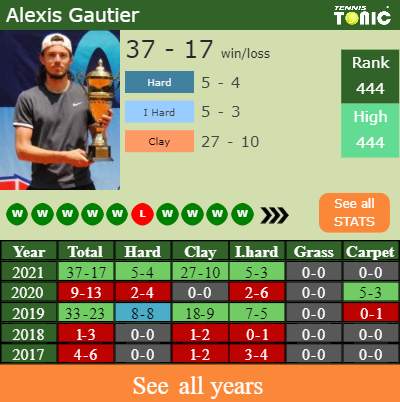 The French player has a composed 37-17 win-loss record in 2021, 27-10 on clay (See FULL STATS).