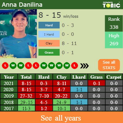 The Kazakhstani has a compiled 8-15 win-loss record in 2021, 0-0 on indoor hard courts (See FULL STATS).