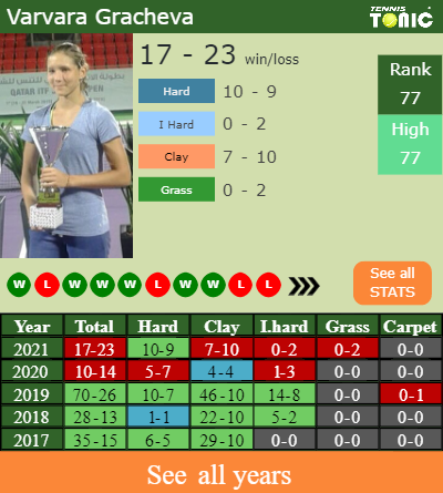 The pick for Tennis Tonic is Varvara Gracheva who should win in 2 sets.