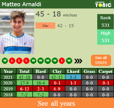 The Italian has a composed 45-18 win-loss record in 2021, 42-15 on clay (See FULL STATS).