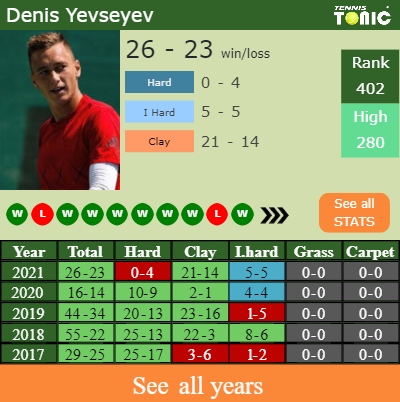 This will be the 2nd time that Marc Polmans and Denis Yevseyev face off. The head to head is 1-0 for Polmans (see full H2H stats), 1-0 on indoor hard courts.