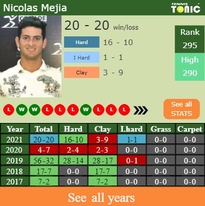 Mejia’s best result of the year was reaching the final in the Salinas Challenger and the Orlando 2 Challenger.
