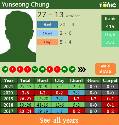 - Yunseong ChungChung – Ji Sung NamSung Nam (2-0) – H2H and prediction