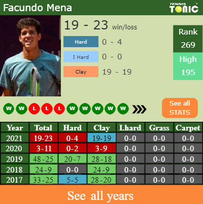 Facundo has a composed 19-23 win-loss record in 2021, 19-19 on clay (See FULL STATS).