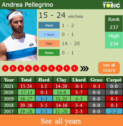 Talking about his overall career, Pellegrino has an overall 187-172 record. He has a positive 149-116 record on clay.