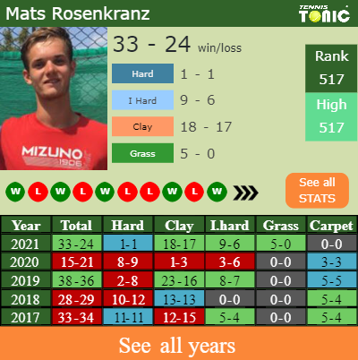 Mats has a composed 33-24 win-loss record in 2021, 18-17 on clay (See FULL STATS).