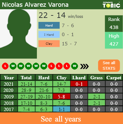 Nicolas has an overall 21-14 win-loss record in 2021, 14-7 on clay (See FULL STATS).
