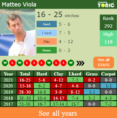 The Italian has an aggregate 16-25 win-loss record in 2021, 7-5 on indoor hard courts (See FULL STATS).