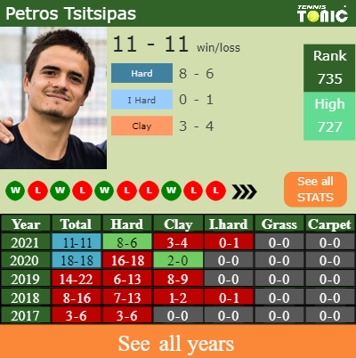 Petros has an overall 11-11 win-loss record in 2021, 3-4 on clay (See FULL STATS).