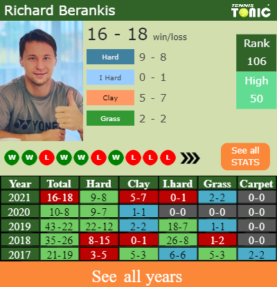 Prediction and head to head Richard Berankis vs. Brayden Schnur
