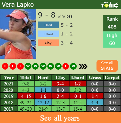 This will be the 2nd time that Yulia Putintseva and Vera Lapko clash against each other. The head to head is 1-0 for Putintseva (see full H2H stats), but they have never competed against each other on indoor hard courts.