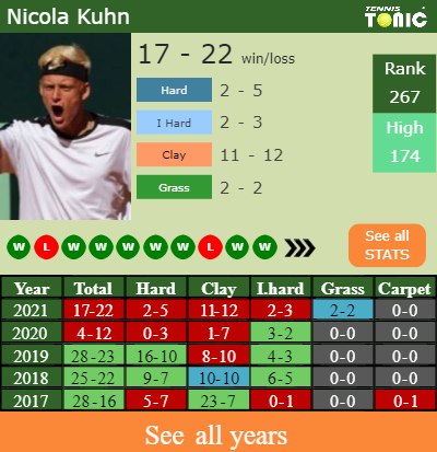 The Spaniard has a compiled 17-22 win-loss record in 2021, 11-12 on clay (See FULL STATS).