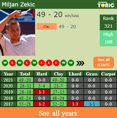 The Serbian has a composed 49-20 win-loss record in 2021, 49-20 on clay (See FULL STATS).