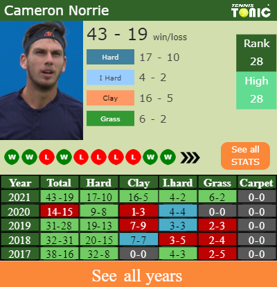 The last time that they competed against each other, Norrie won 7-5 6-3 in the semifinal in London back in June 2021.