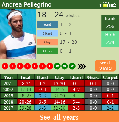 Pellegrino started his run at this tournament from the qualifications. In the main draw, he hasn’t lost yet a set in this competition to conquer 59% of the points he played.