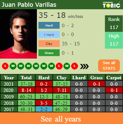 Juan has a composed 37-18 win-loss record in 2021, 37-15 on clay (See FULL STATS).