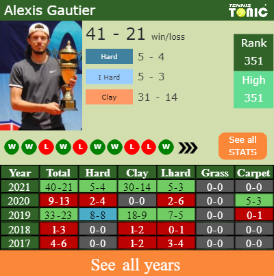 Gautier has an aggregate 40-21 win-loss record in 2021, 30-14 on clay (See FULL STATS).