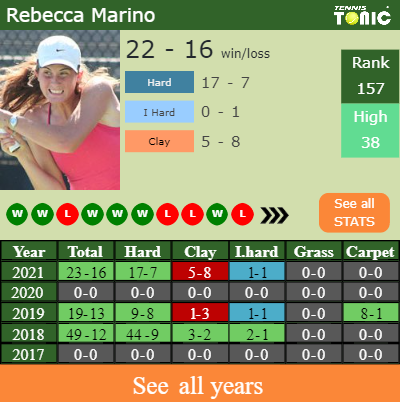 Marino has an aggregate 23-16 win-loss record in 2021, 17-7 on hard (See FULL STATS).