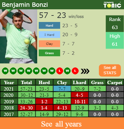 The pick for Tennis Tonic is Benjamin Bonzi who should win in 2 sets.