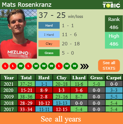 Mats has an overall 37-25 win-loss record in 2021, 11-6 on indoor hard courts (See FULL STATS).