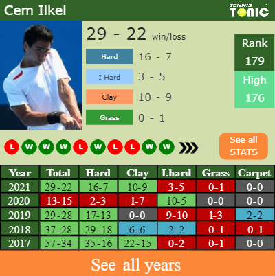 Cem has an aggregate 29-22 win-loss record in 2021, 16-7 on hard (See FULL STATS).