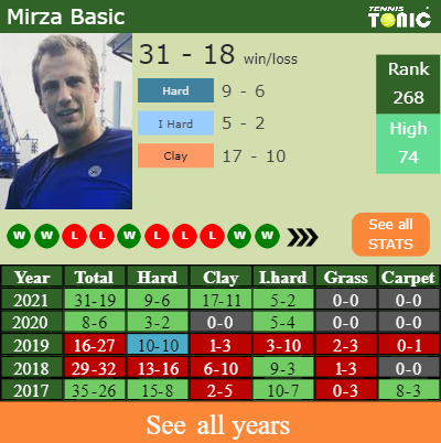 The Bosnian has an overall 31-19 win-loss record in 2021, 17-11 on clay (See FULL STATS).