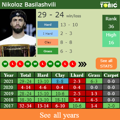 The Georgean has an aggregate 29-24 win-loss record in 2021, 13-10 on hard (See FULL STATS).