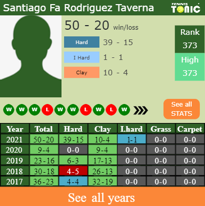 Fa Rodriguez Taverna has an aggregate 50-20 win-loss record in 2021, 39-15 on hard (See FULL STATS).