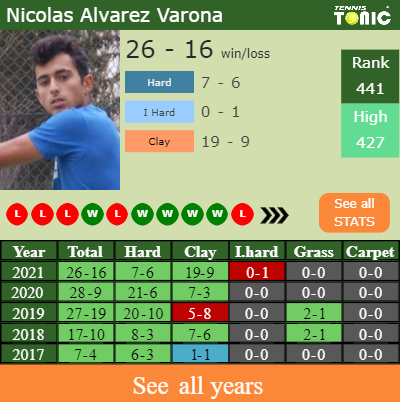 Nicolas has an aggregate 26-16 win-loss record in 2021, 7-6 on hard (See FULL STATS).