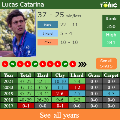 There is no head to head record between Marcelo Tomas Barrios Vera and Lucas Catarina since this will be the first time that they will fight against each other in the main tour.
