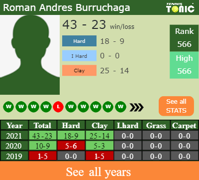 In terms of his career, Roman has an overall 54-37 record. He has a positive 31-22 record on clay.
