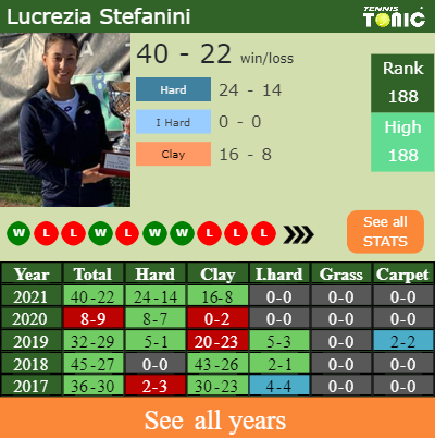 Stefanini has a compiled 40-22 win-loss record in 2021, 24-14 on hard (See FULL STATS).