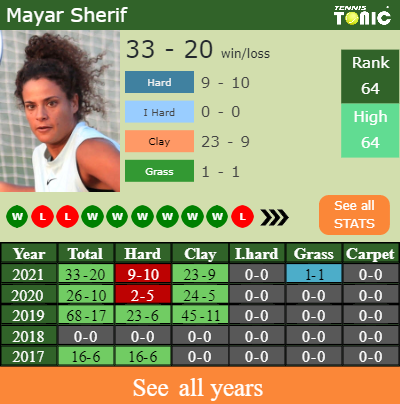 Mayar has an aggregate 33-20 win-loss record in 2021, 9-10 on hard (See FULL STATS).